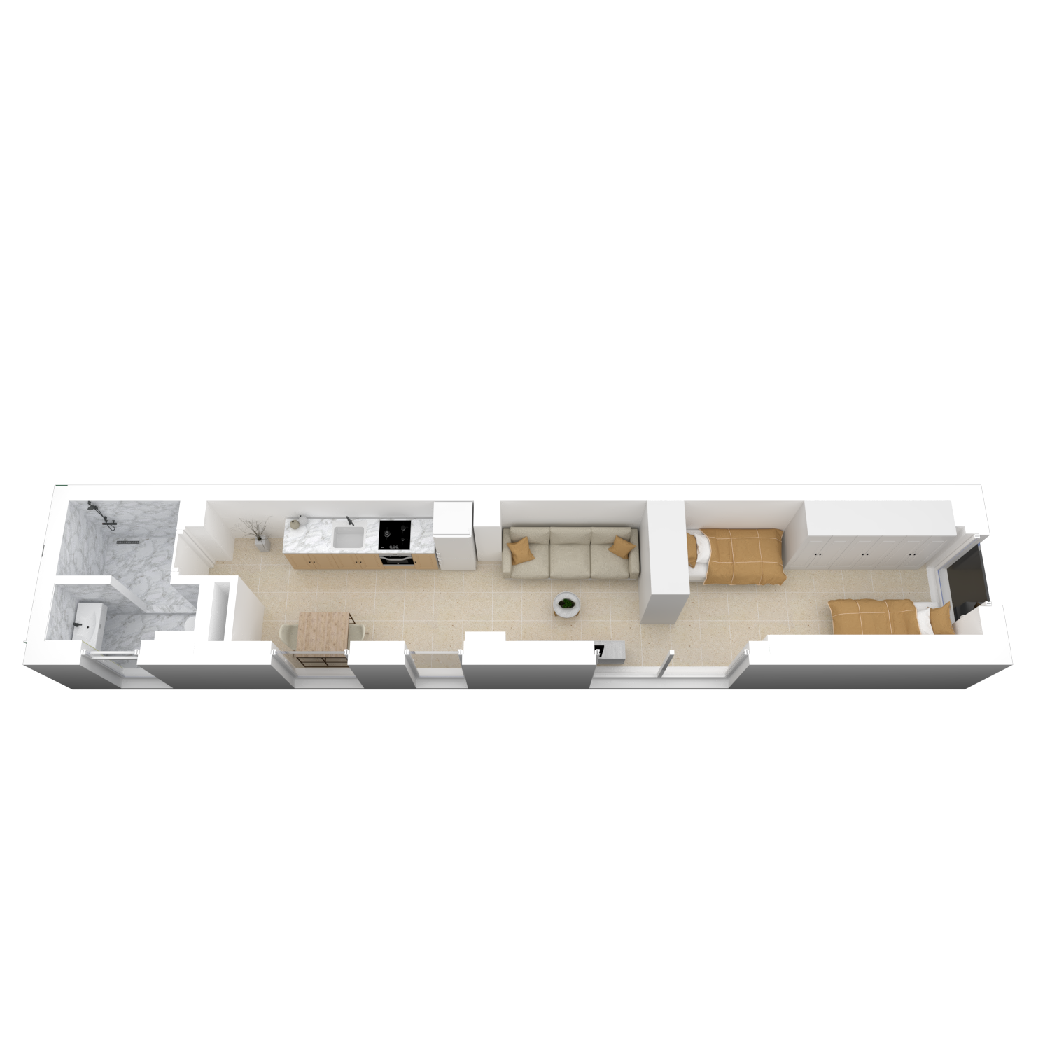 Shes apartament 1+1 me siperfaqe 53 m2, orientim veri-lindje, kati 4 me fushepamje te lire ne kompleksin Mangalem 21 te Ali Demi