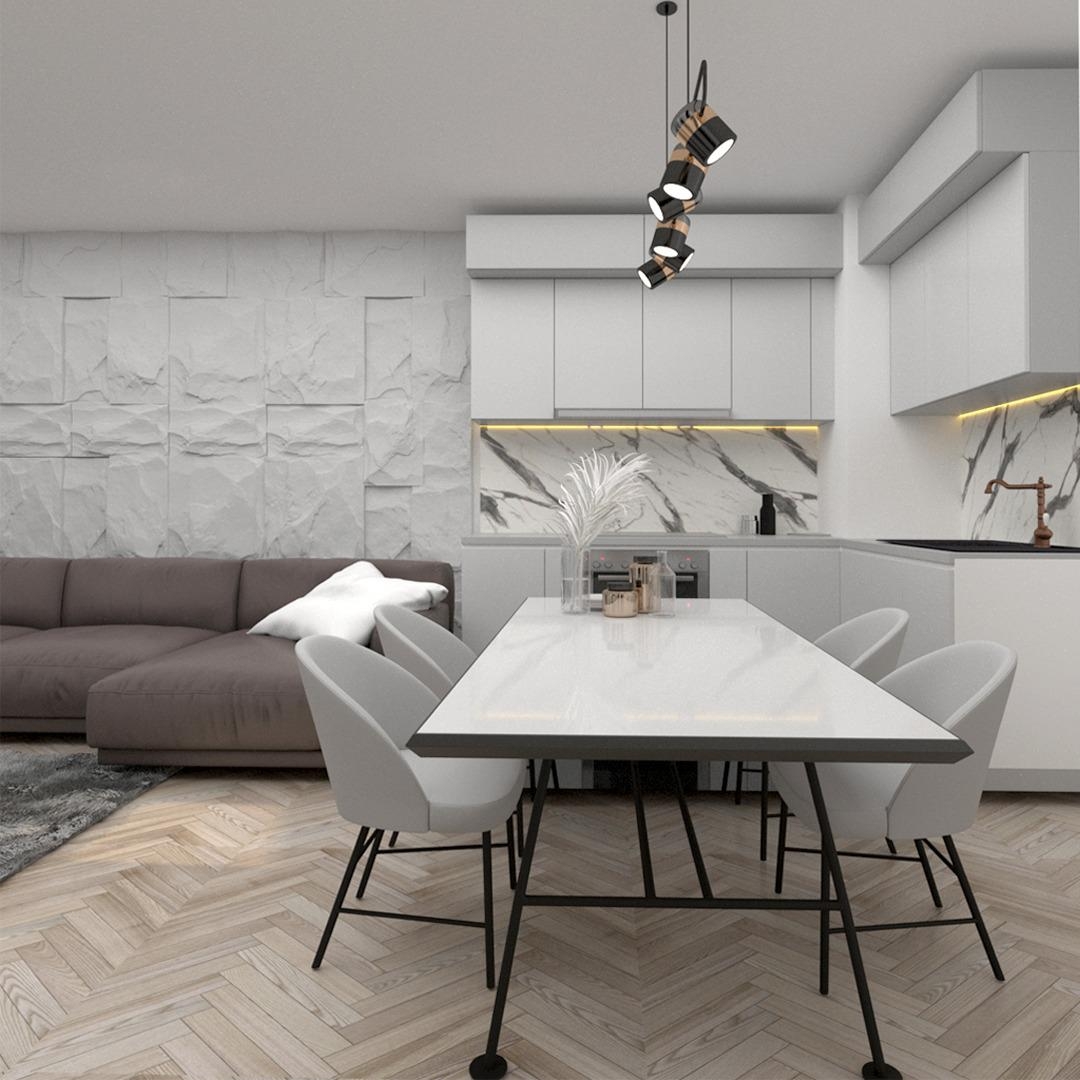 Apartament 2+1, me sipërfaqe 94.4 m2, me një orientim midis veriut dhe perëndimit.