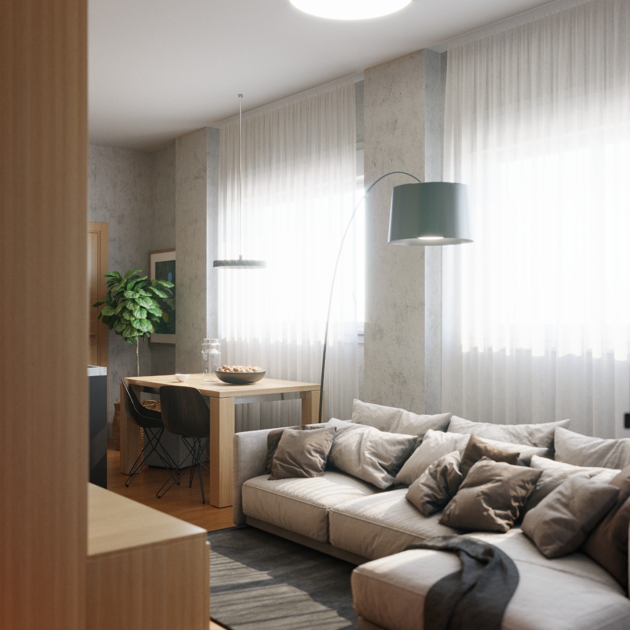 Apartament 1+1, me siperfaqe 67.7 m2, me orientim lindje-perendim.
