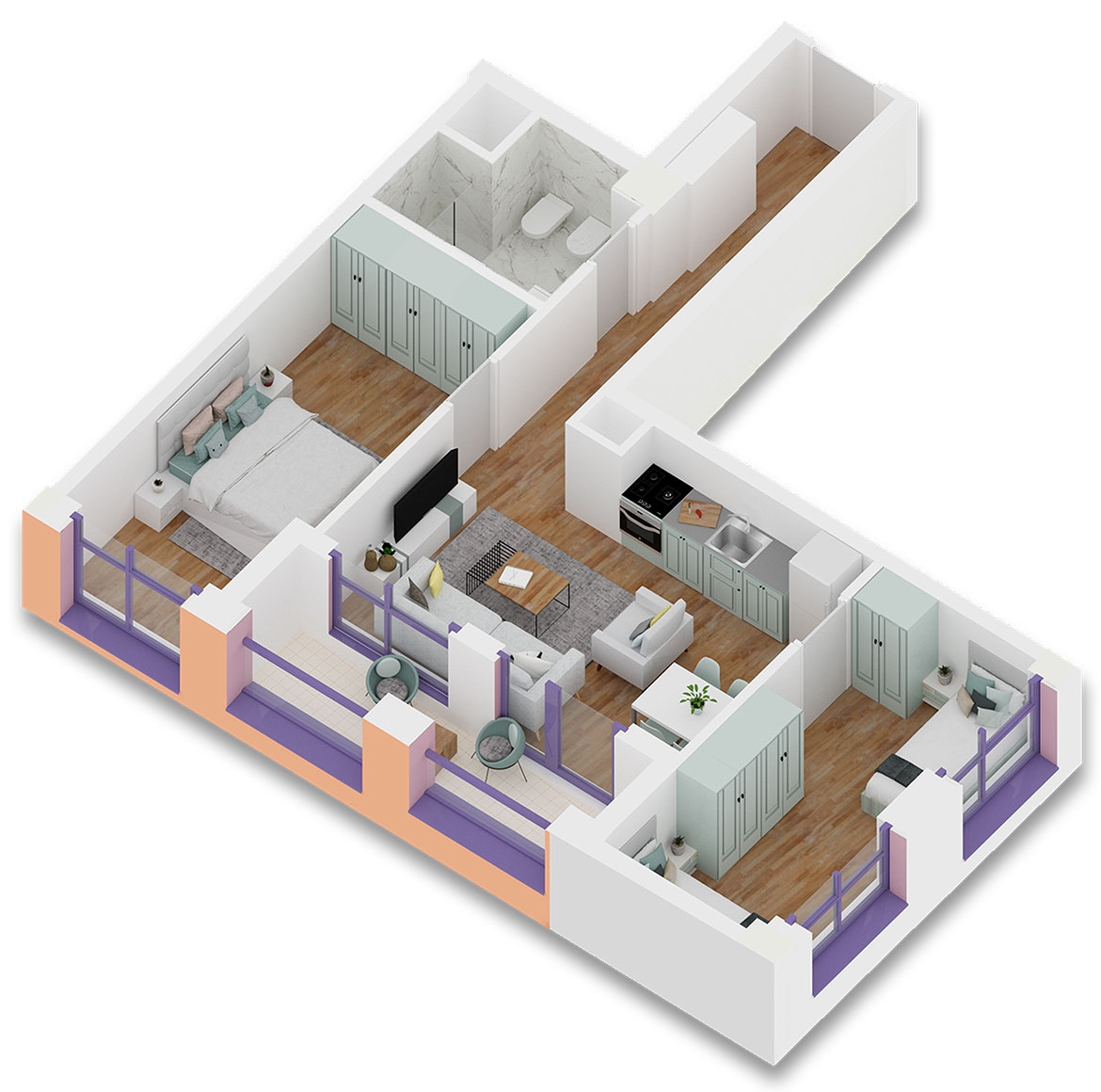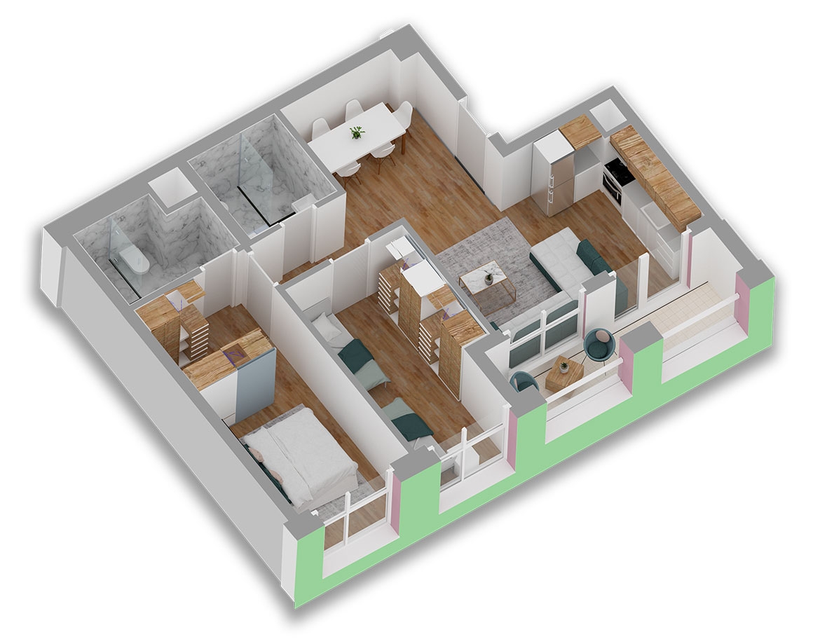 Shes Apartament me hipoteke ne Tirane tek 21 Dhjetori, S 62.8m2, Orientim Jug-Lindje, Pagesa me keste, Zëizolim, Fasadë e ventiluar, Hapësira të gjelbërta dhe pedonale, Cmimi 57,000