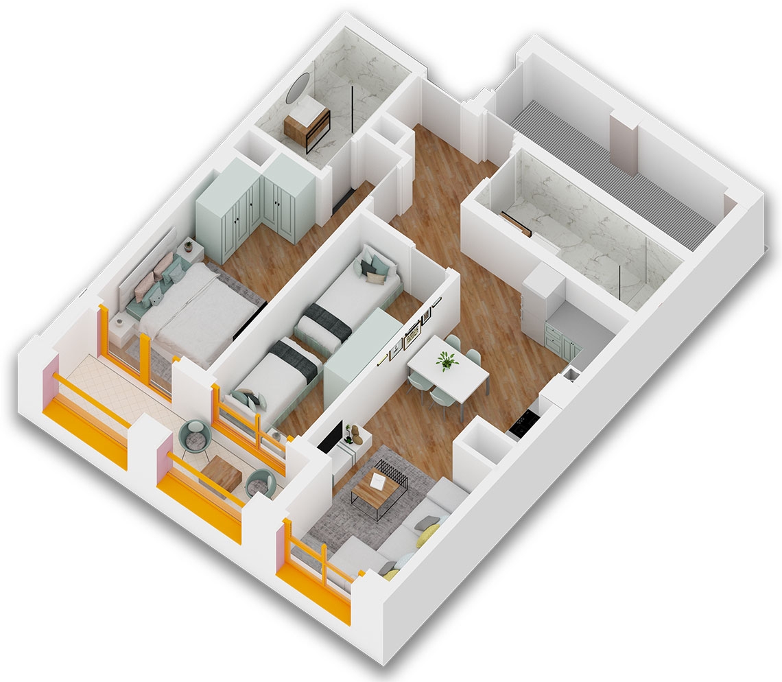 Apartament 2+1 ne shitje ne Tirane tek Ali Demi ne rezidencen Mangalem 21.