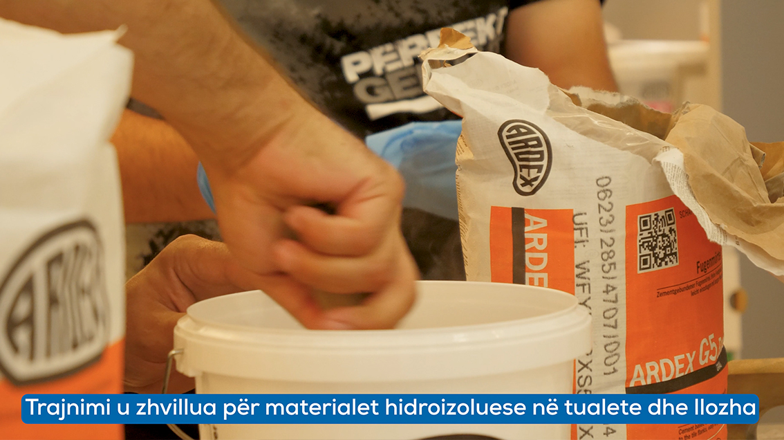 Pjesë e stafit të Kontakt merr pjesë në një trajnim për hidroizolimin në fabrikën e Ardex në Tiranë.